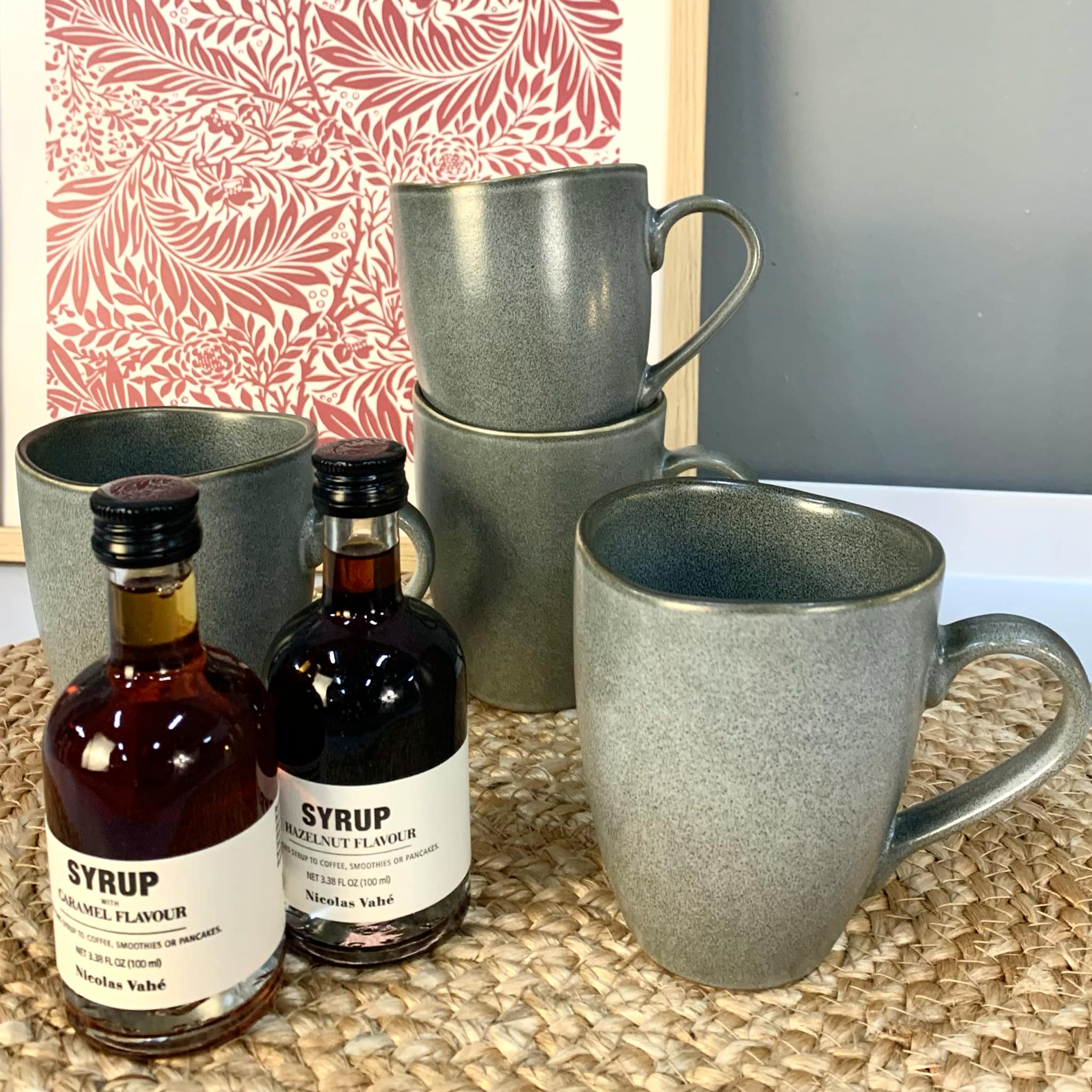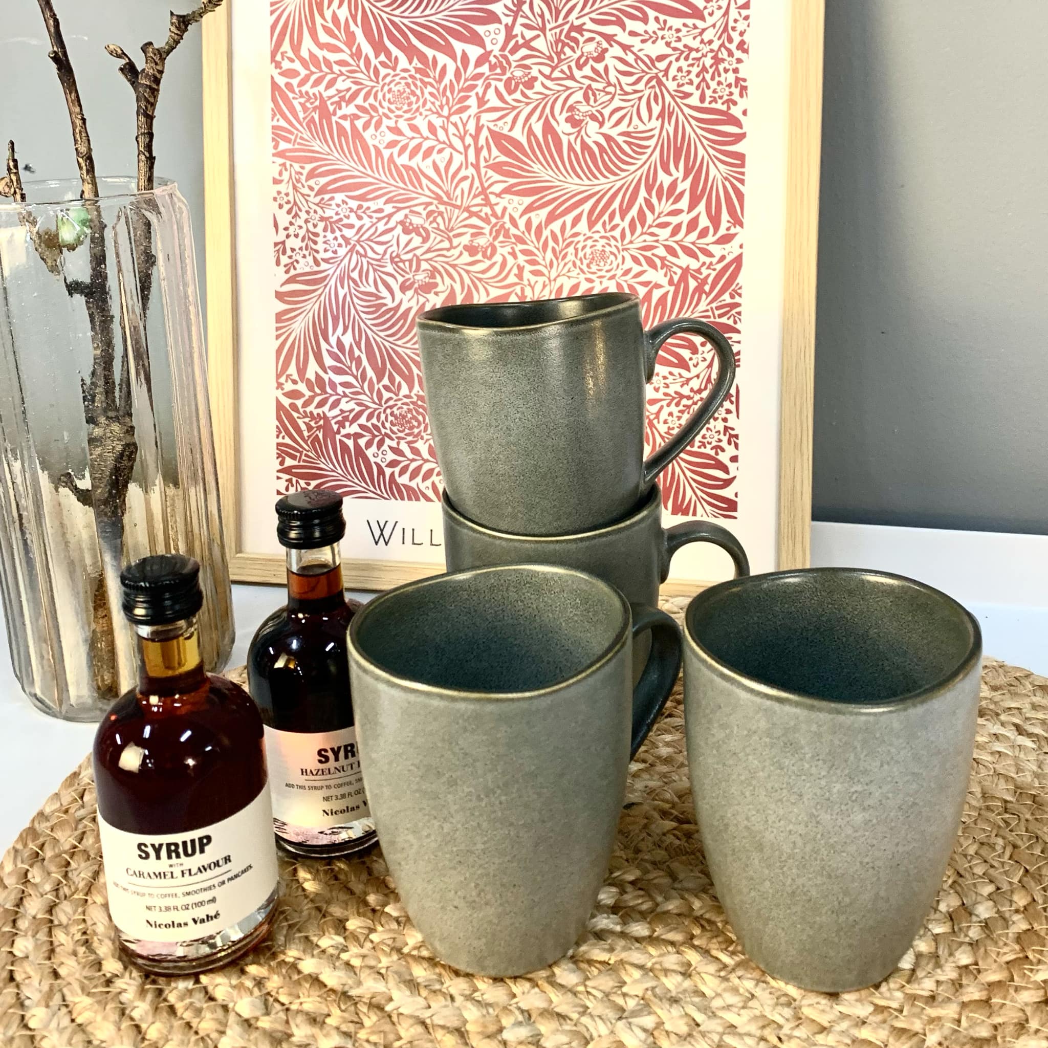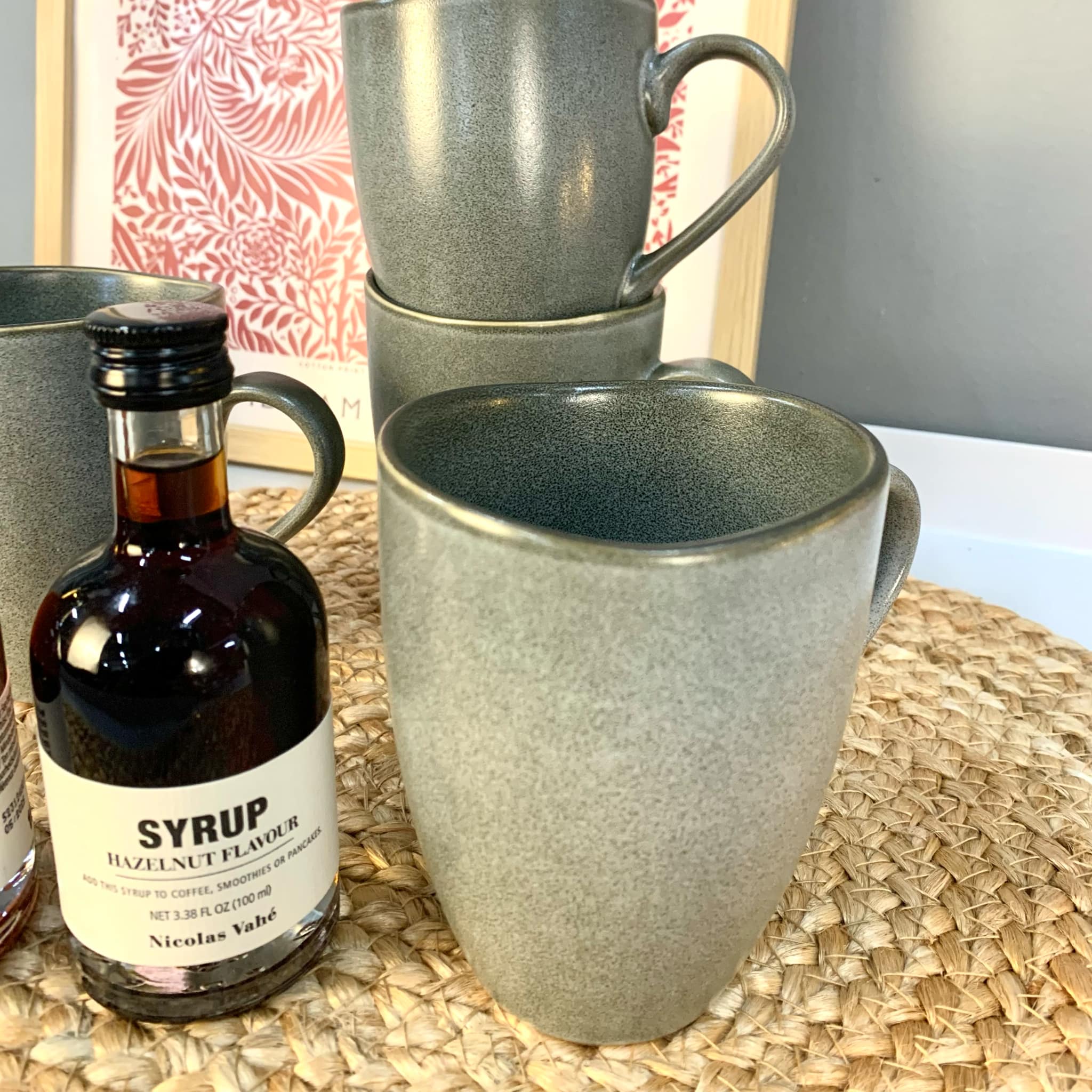Vil pynte på hylden i køkkenet og på bordet med kaffe/te i