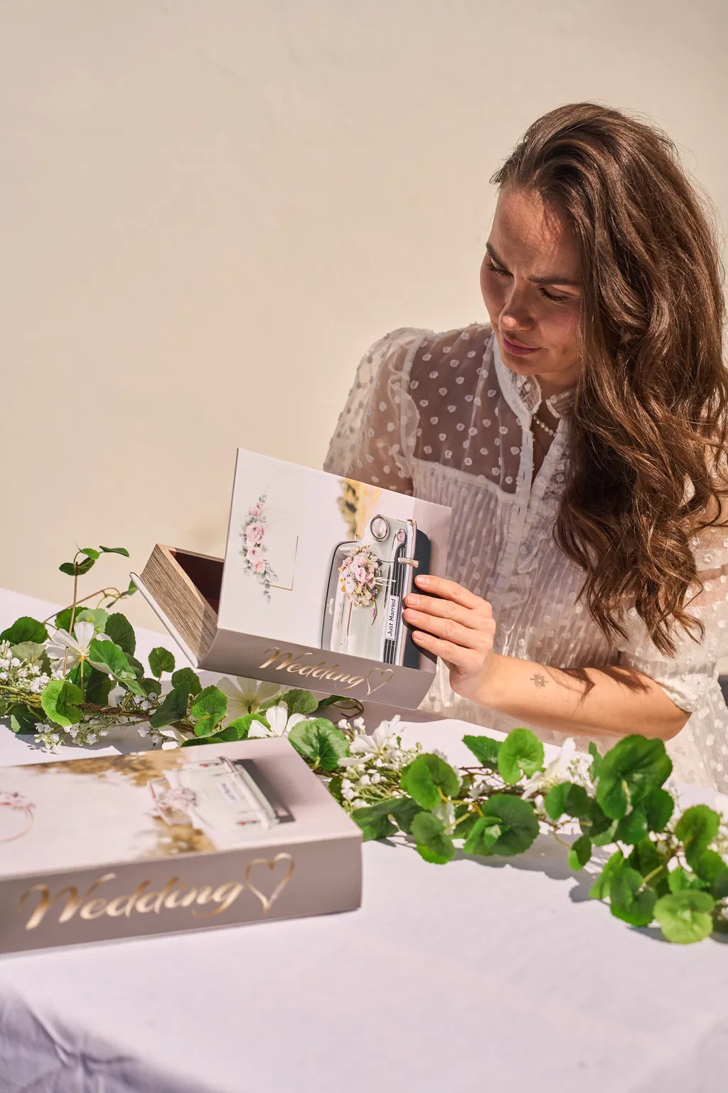 Opbevaringsæske “Wedding” i bogform er den lille detalje, der gør en stor forskel. Med sit elegante bryllupstema ligner den en klassisk bog, men gemmer på plads til minder, overraskelser og betydningsfulde øjeblikke. Perfekt som gaveindpakning til et bryllup – eller som en diskret og dekorativ sangskjuler, der vækker smil og nysgerrighed.