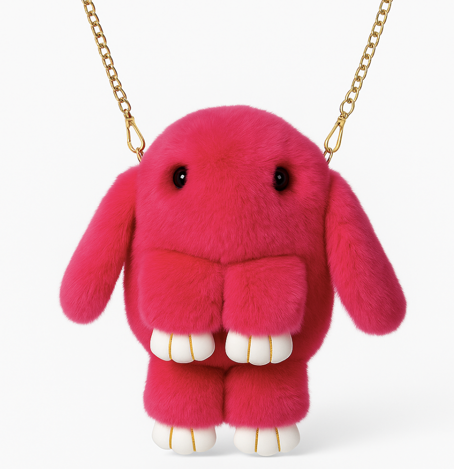 Crossbody-taske Kanin – Pink er mere end en taske; den er et statement. Den bløde plys og den klare pink farve skaber øjeblikkelig glæde og opmærksomhed, uanset hvor du går. Med sit nuttede kaninansigt og elegante guldkæde kombinerer den legende charme med et eksklusivt touch, der gør den uimodståelig.