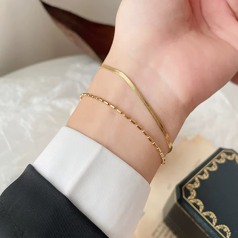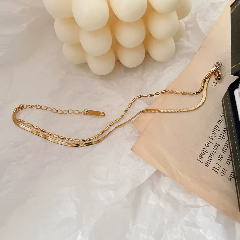 Minimalistisk dobbeltlag armbånd i 18K guldbelagt rustfrit stål