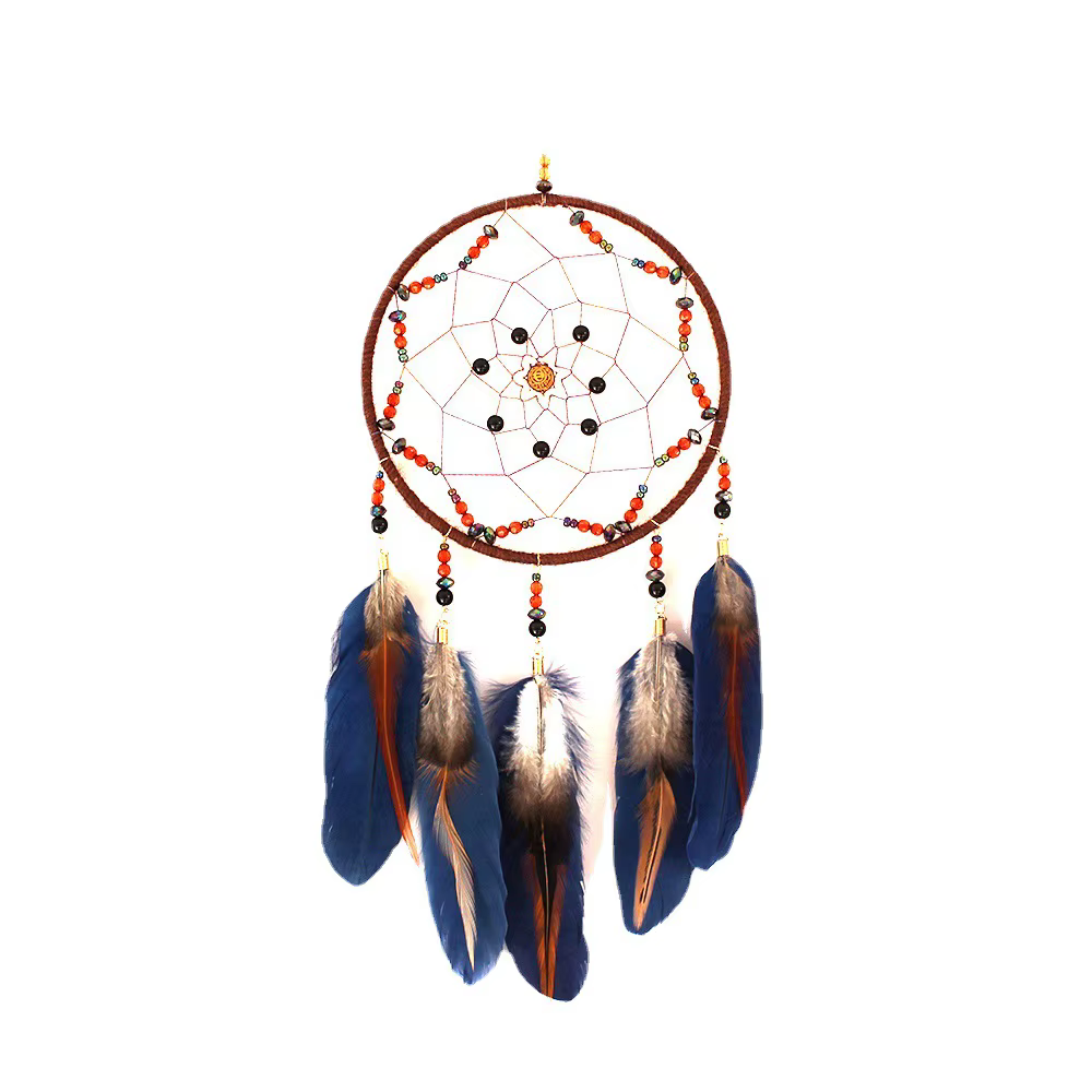 Skab en smuk stemning i dit hjem med denne perlebesatte drømmefanger i farverne marineblå og brun.