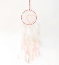 Drømmefanger Rosa med Hjerte og Lys forvandler børneværelset til et trygt og eventyrligt frirum. Det bløde rosa design, det hæklede hjerte og de fine fjer skaber ro, mens den indbyggede LED-lyskæde giver et varmt skær, der beroliger ved sengetid og styrker følelsen af tryghed.