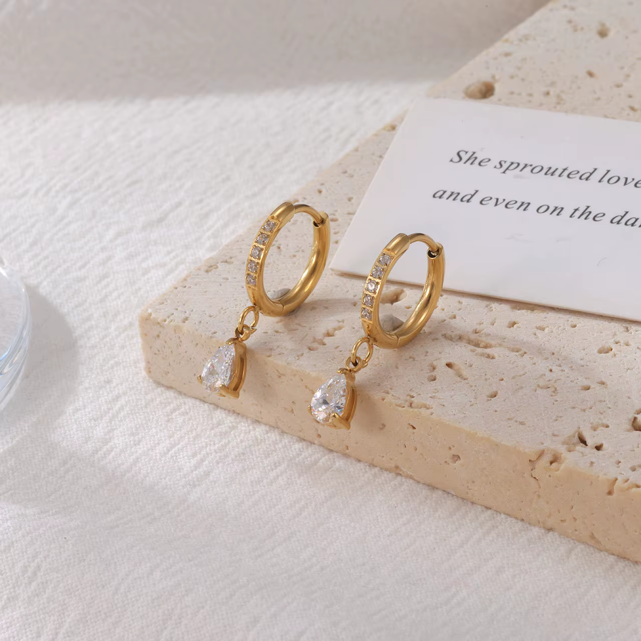 Hoop øreringe med vanddråbe vedhæng forener klassisk form med moderne femininitet. Det bløde vanddråbedesign fanger lyset subtilt og giver dit look et luksuriøst løft – uden at blive prangende. Perfekte til både arbejde, hverdag og særlige øjeblikke, hvor enkel elegance gør hele forskellen.