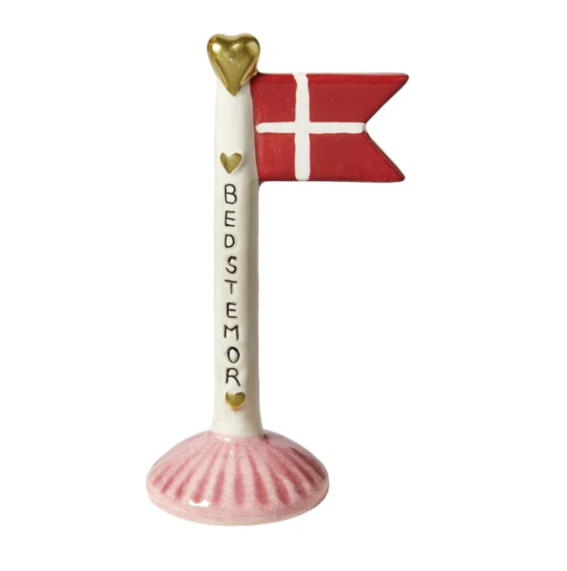 Dette smukke keramik Dannebrogsflag til Bedstemor er mere end pynt – det er en følelse. Med sit røde flag, hvide glaserede fod, gyldne hjerter og teksten “Bedstemor” skaber det øjeblikkelig varme og nostalgi. En gave, der siger tak, kærlighed og respekt på én gang.