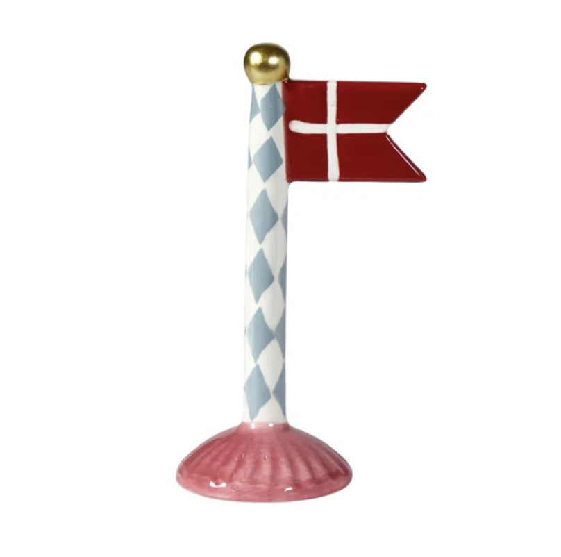 Dette keramiske Dannebrogsflag fra TheClayPlay er skabt til at vække følelser og samle mennesker omkring bordet. Med sine fine proportioner på 8x5x14 cm kombinerer det klassisk dansk symbolik med et nutidigt, legende udtryk. Den lyseblå og hvide harlekinmønstrede flagstang, den gyldne knop og den rosa glaserede fod skaber et eksklusivt blikfang, der føles både personligt og gennemført.