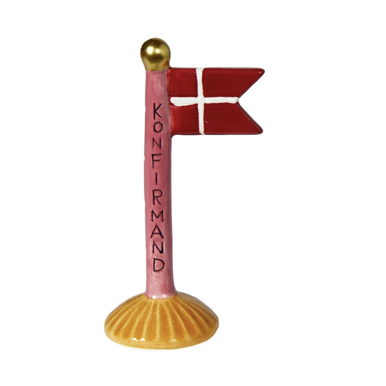 Speedtsberg Keramik Flag – Konfirmand er mere end en dekoration; det er et varigt symbol på en stor dag. Det håndmalede keramikflag kombinerer dansk tradition med et moderne udtryk, den orange fod skaber varme, og guldknoppen tilfører eksklusivitet. Perfekt til borddækningen, hvor det straks skaber stemning og følelser.