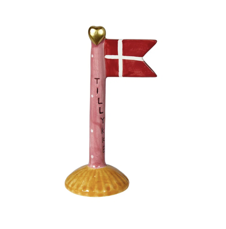 Dette dekorative bordflag i keramik kombinerer det ikoniske Dannebrog med den varme tekst “Tillykke” og skaber øjeblikkelig feststemning. Den orange fod giver et moderne twist, mens størrelsen passer perfekt til borddækning. Brug det igen og igen til livets store øjeblikke, hvor tradition, kvalitet og ægte dansk hygge skal gå hånd i hånd.