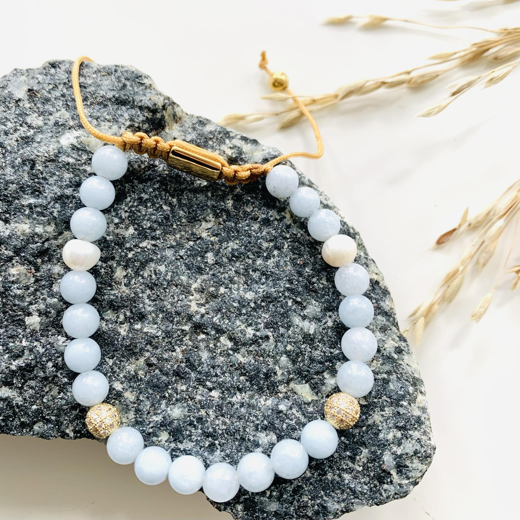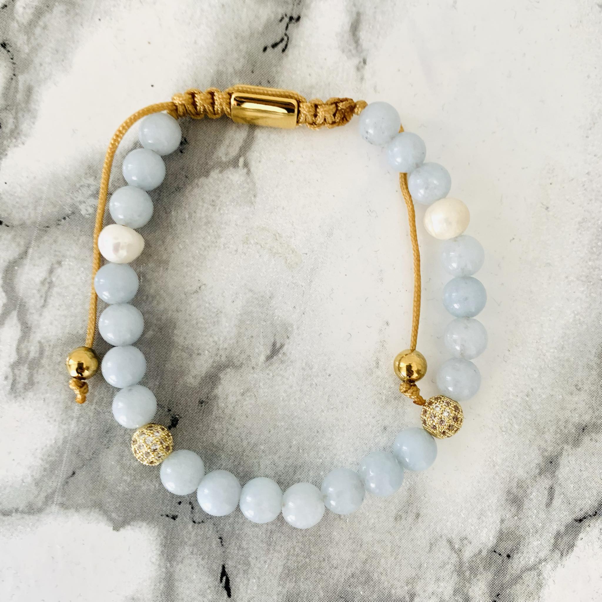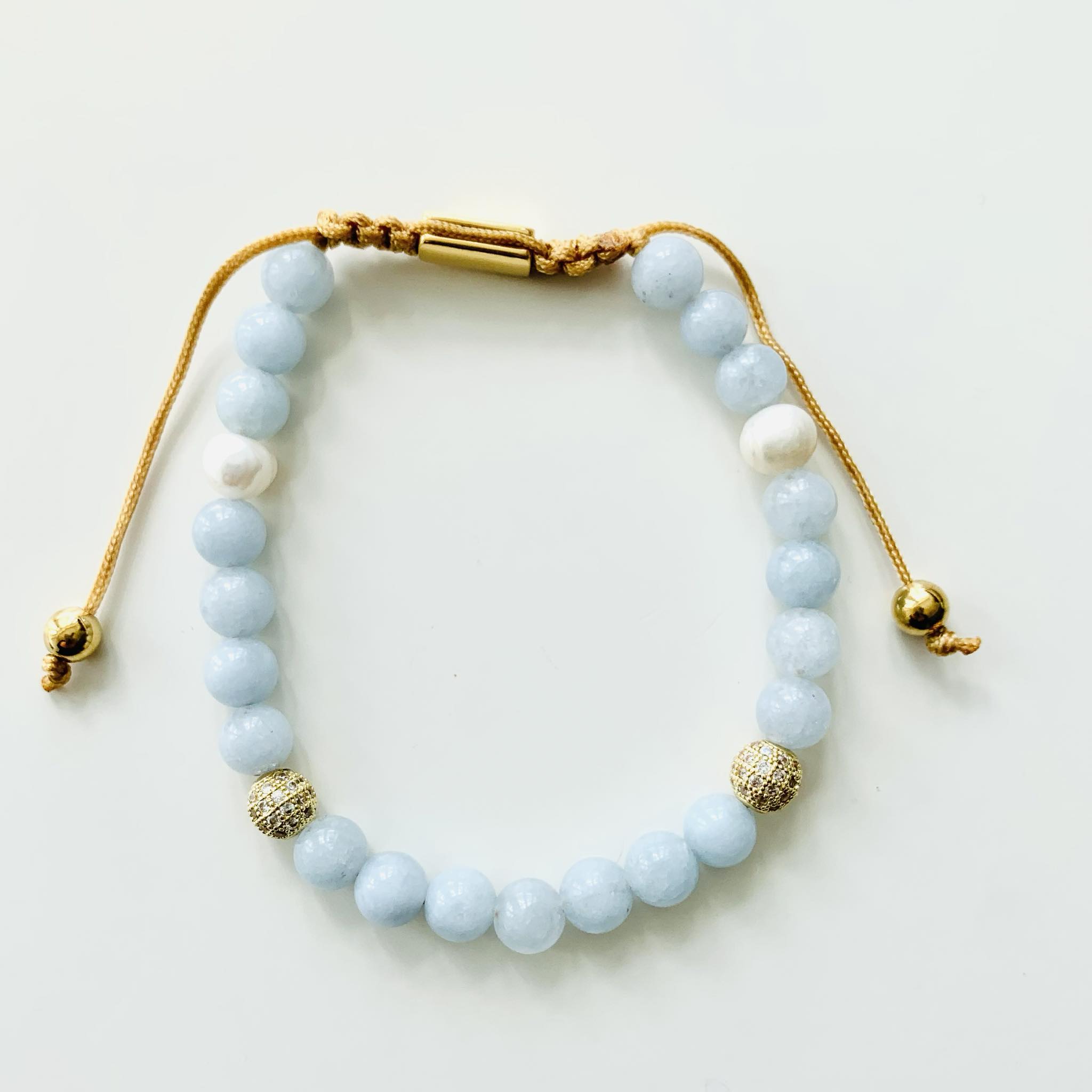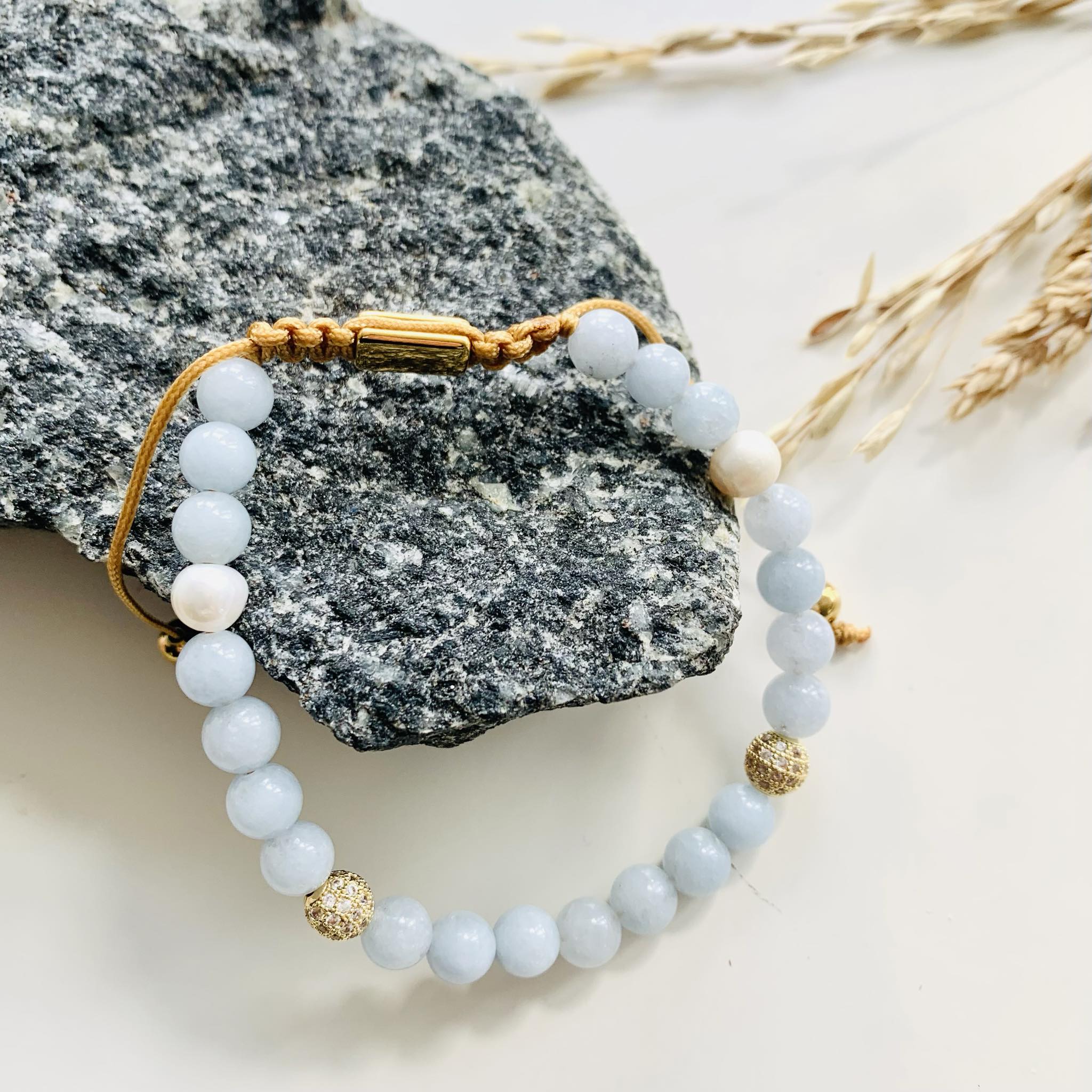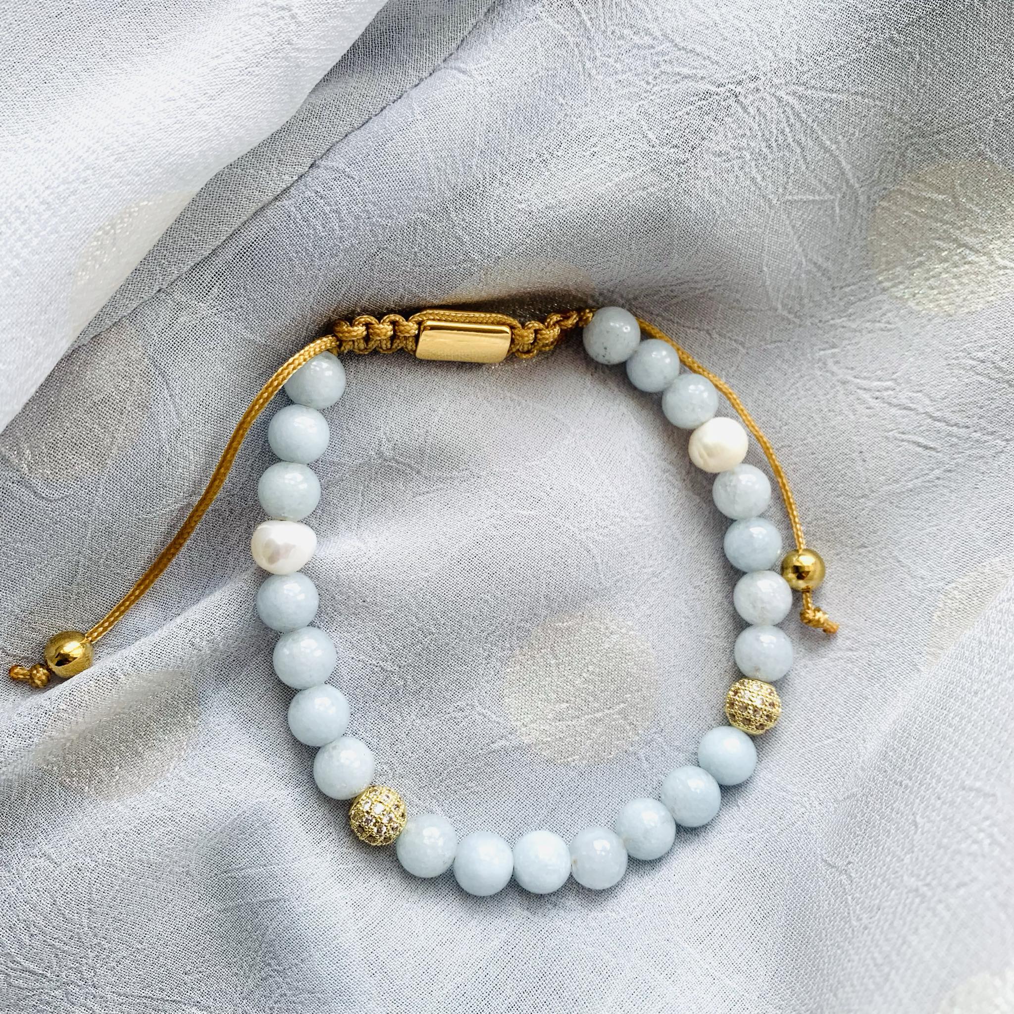 Smukt knyttet armbånd i god kvalitet med ægte halvædelsten.