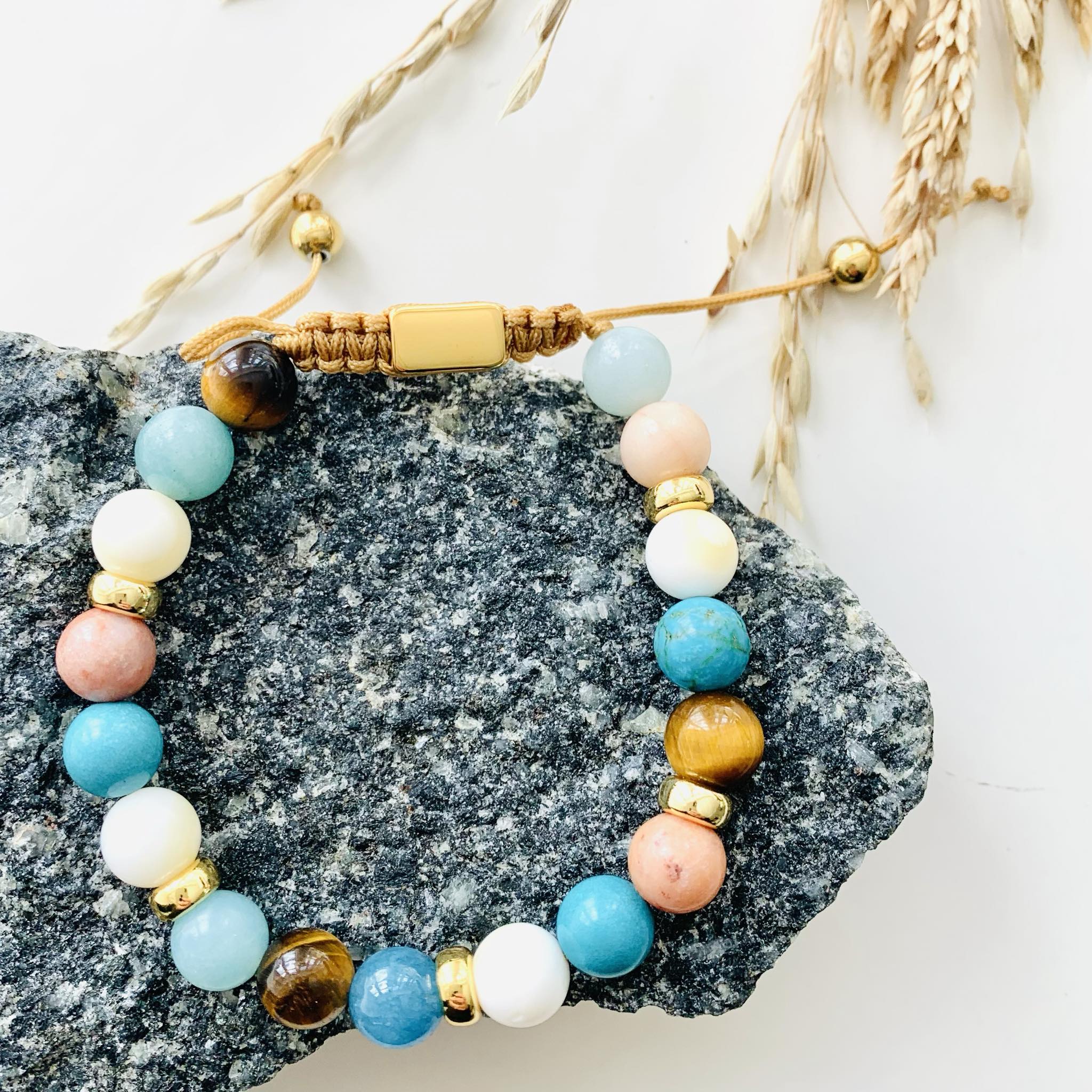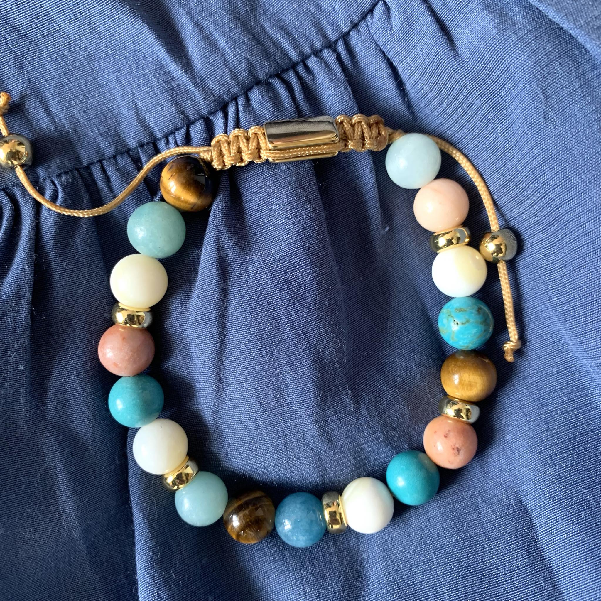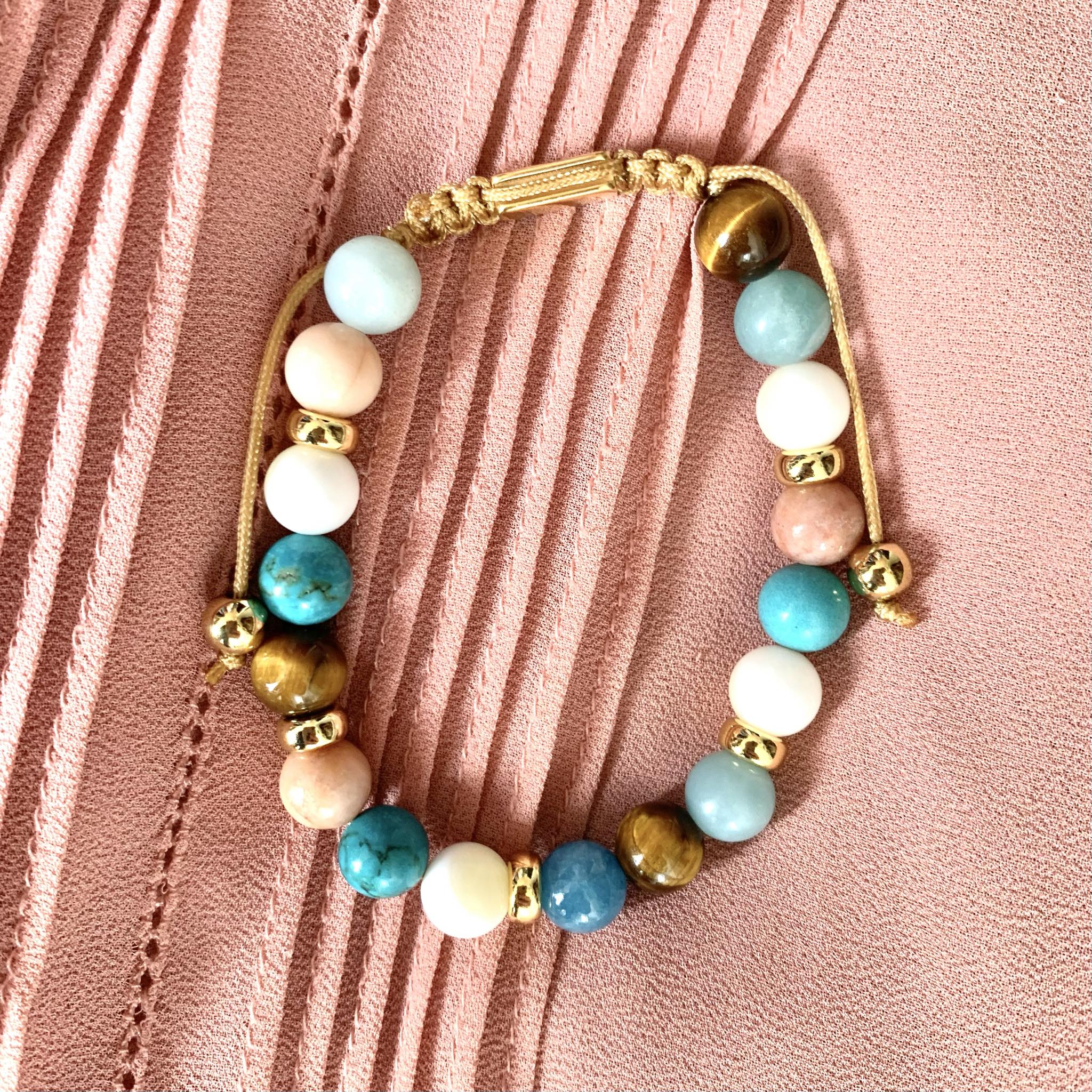 Smukt knyttet armbånd i god kvalitet med ægte halvædelsten.