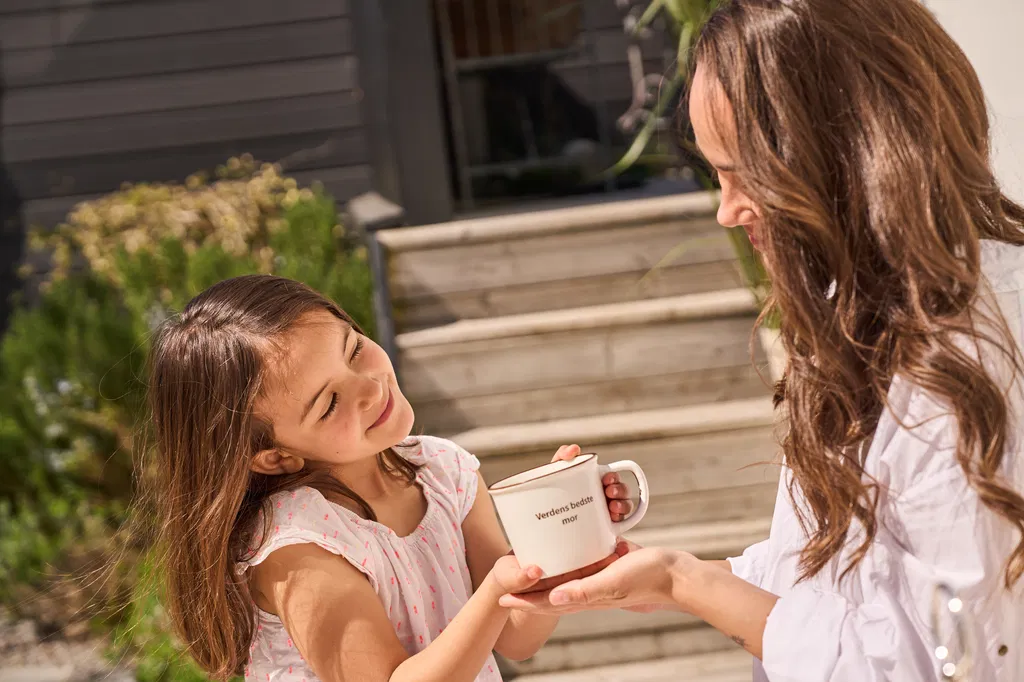 Giv verdens bedste mor en hjertevarm gave med denne smukke porcelænskop, indgraveret med teksten “Til verdens bedste mor”. Koppen er den perfekte måde at vise, hvor meget hun betyder, og vil med garanti gøre enhver kaffestund, tepause eller varm drik ekstra hyggelig.