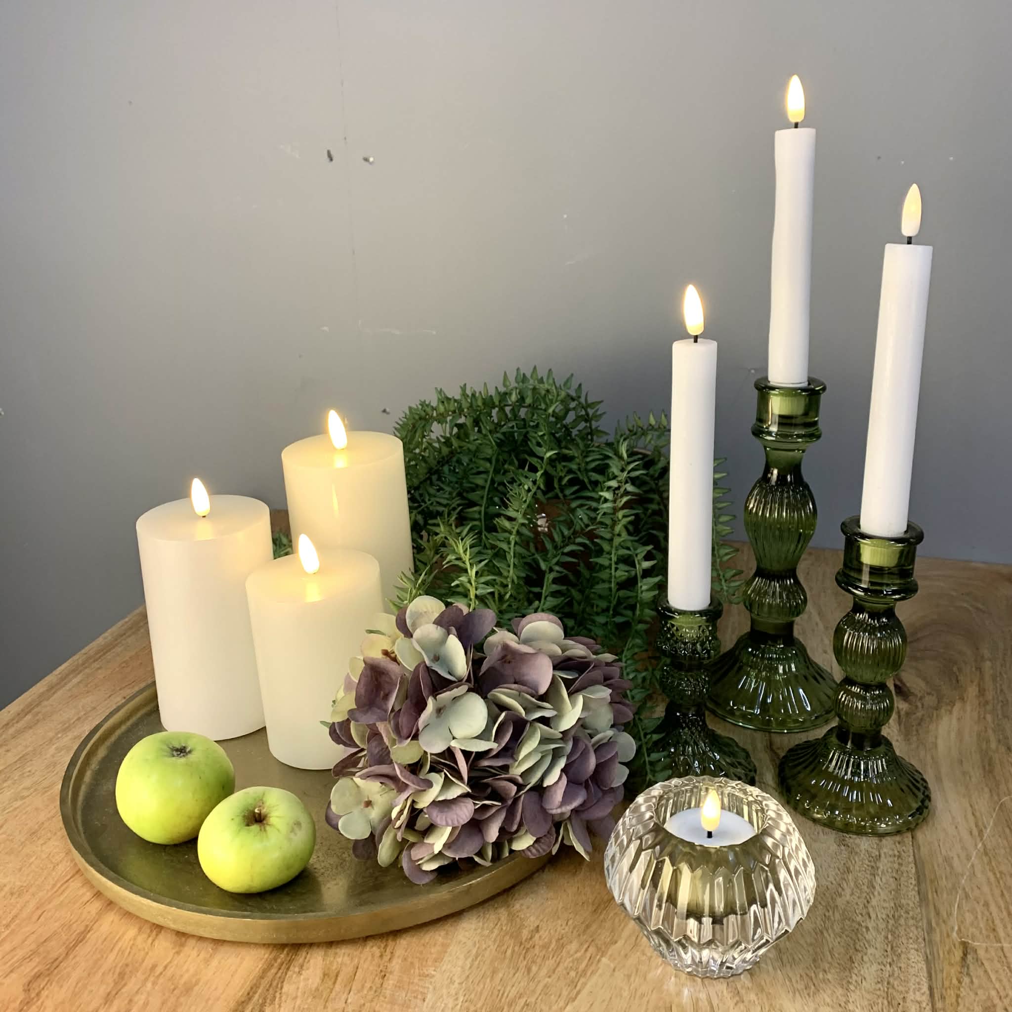 De blafrende, varme lys giver et naturtro udtryk, der spreder ro og hygge i hjemmet – uden sod, røg eller risiko for brand.