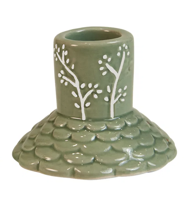 Lysestage D7x5,5cm keramik – Grøn