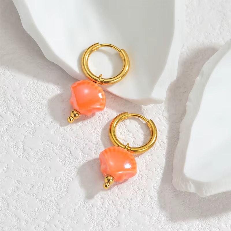 Disse Øreringe med muslingvedhæng i guld/koral er skabt til at give dit look et øjeblikkeligt løft. De legende candy-farver og den elegante skalform balancerer perfekt mellem feminint og moderne. Et smykke, der føles let, ser eksklusivt ud og passer lige så godt til hverdagen som til solrige feriedage.