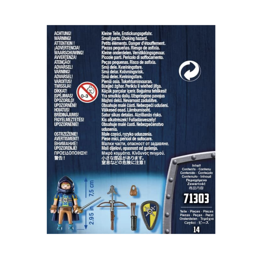 Playmobil Novelmore (71303) Spændende Playmobil-figur fra Novelmore-universet bevæbnet med armbrøst, sværd og skjold. Perfekt til fantasifulde riddereventyr for børn fra 4–10 år. Indeholder 14 dele.