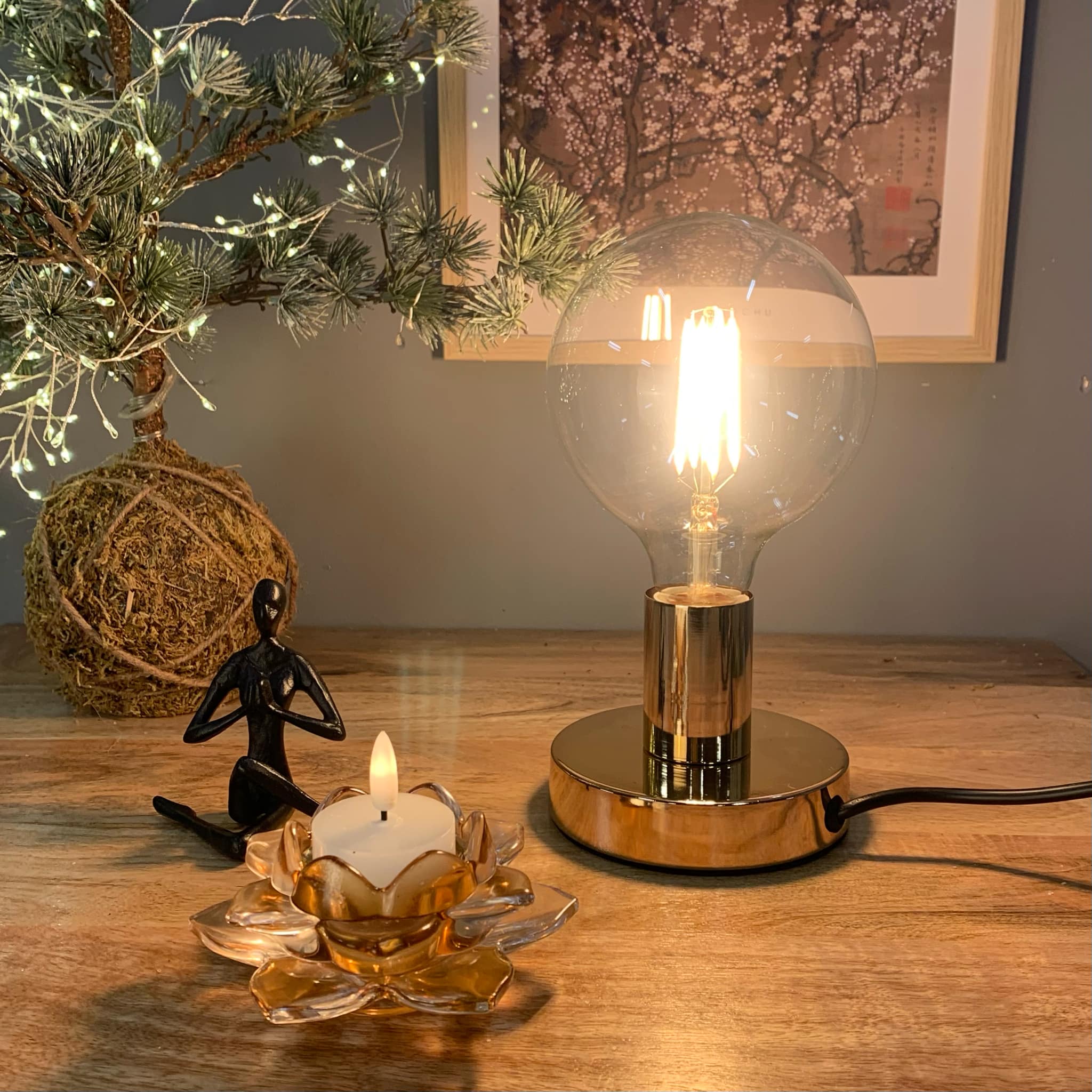 Skab god stemning i hjemmet med hyggebelysning og denne lampefod kan med fordel suppleres med en stor globe dekorationspære