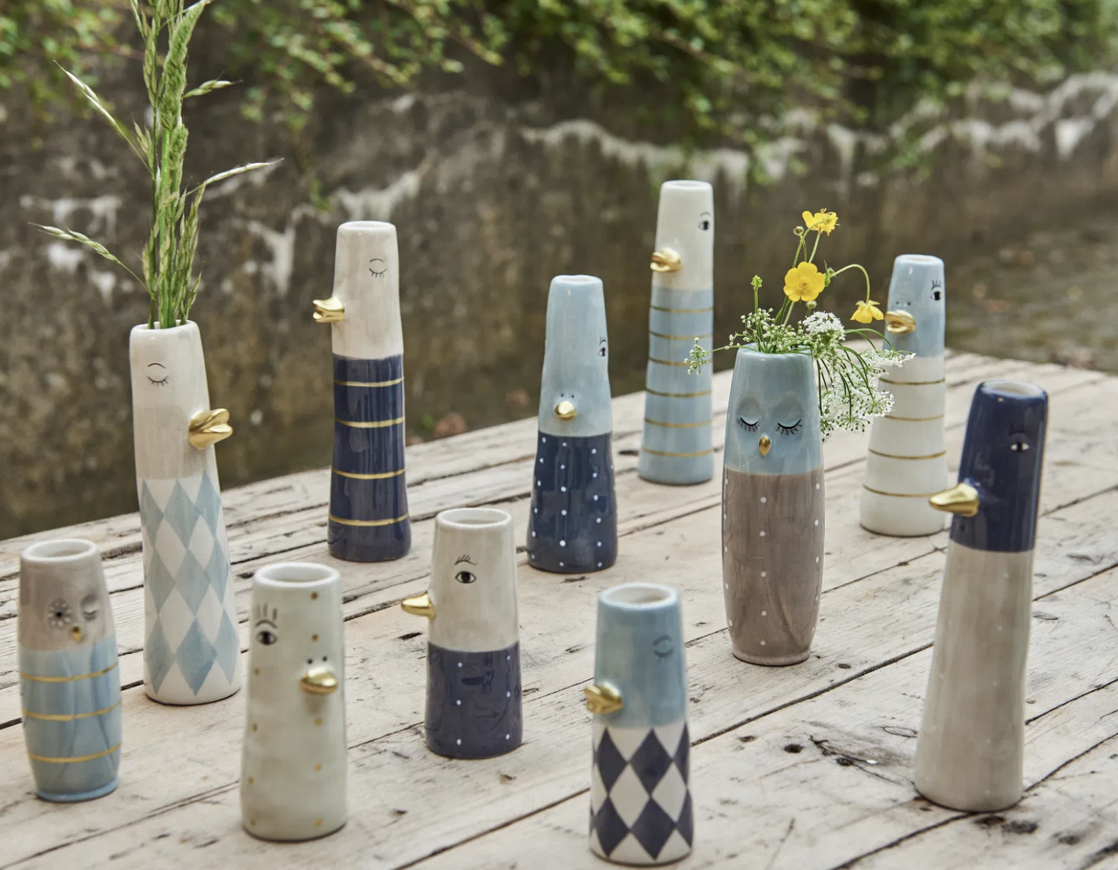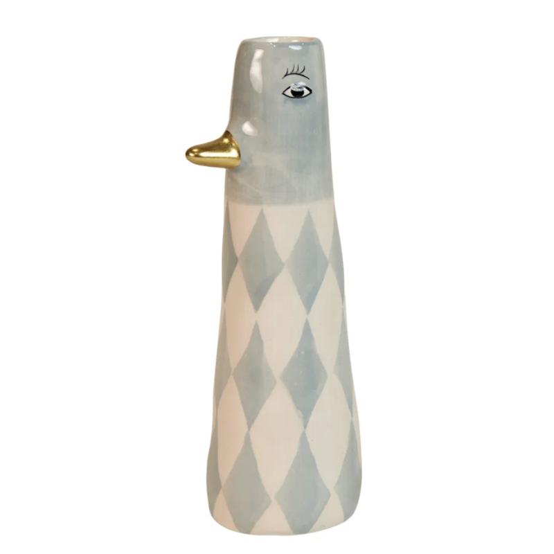 Denne keramiske Harlekin-vase i blå nuancer forener klassisk design med moderne charme. Det ikoniske harlekinmønster, det fine ansigt og det guldfarvede næb skaber en dekorativ helhed, der vækker nysgerrighed. Den slanke form og rolige farveskala giver et eksklusivt udtryk, som løfter indretningen uden at virke påtrængende.