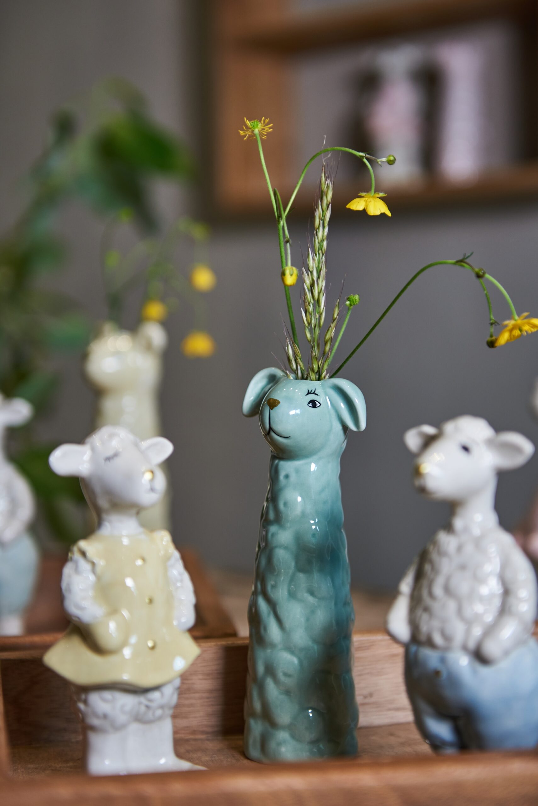 Vase Får H15cm keramik – Aqua er en dekorativ favorit, der bringer ro, personlighed og stil ind i dit hjem. Den håndmalede keramiske fårefigur kombinerer bløde former med et venligt udtryk og smukke aqua-grønne nuancer. Den glaserede overflade skaber et levende farvespil, der føles både naturligt og eksklusivt. Med sine 15 cm har den en perfekt størrelse til at pynte uden at dominere, uanset hvor du placerer den.